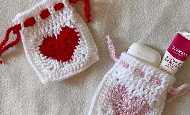 Heart crochet drawstring bag
